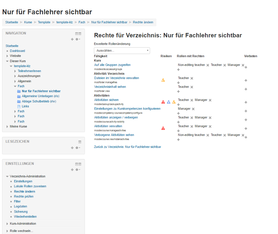 6) Festlegen der Berechtigung [Einstellungen / Rechte ändern] in der linken Spalte